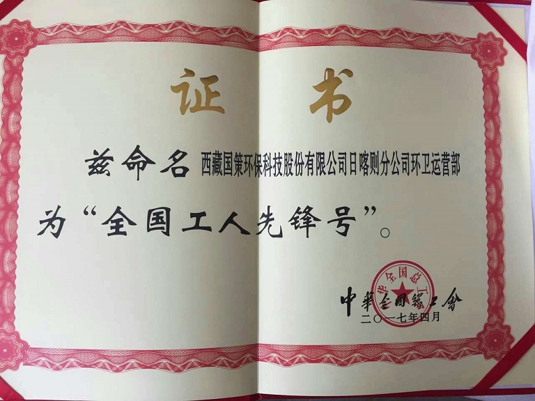 日前,全國(guó)總工會(huì)召開(kāi)“五一”新聞發(fā)布會(huì), 通報(bào)了一批“2017年全國(guó)工人先鋒號(hào)”。西藏國(guó)策環(huán)??萍脊煞萦邢薰救湛t分公司運(yùn)營(yíng)部全體成員在日常工作中勞心勞力、風(fēng)雨無(wú)阻、踐行無(wú)私奉獻(xiàn)的城市“美容師”精神,被授予“2017年全國(guó)工人先鋒號(hào)”,是我司首獲此殊榮。