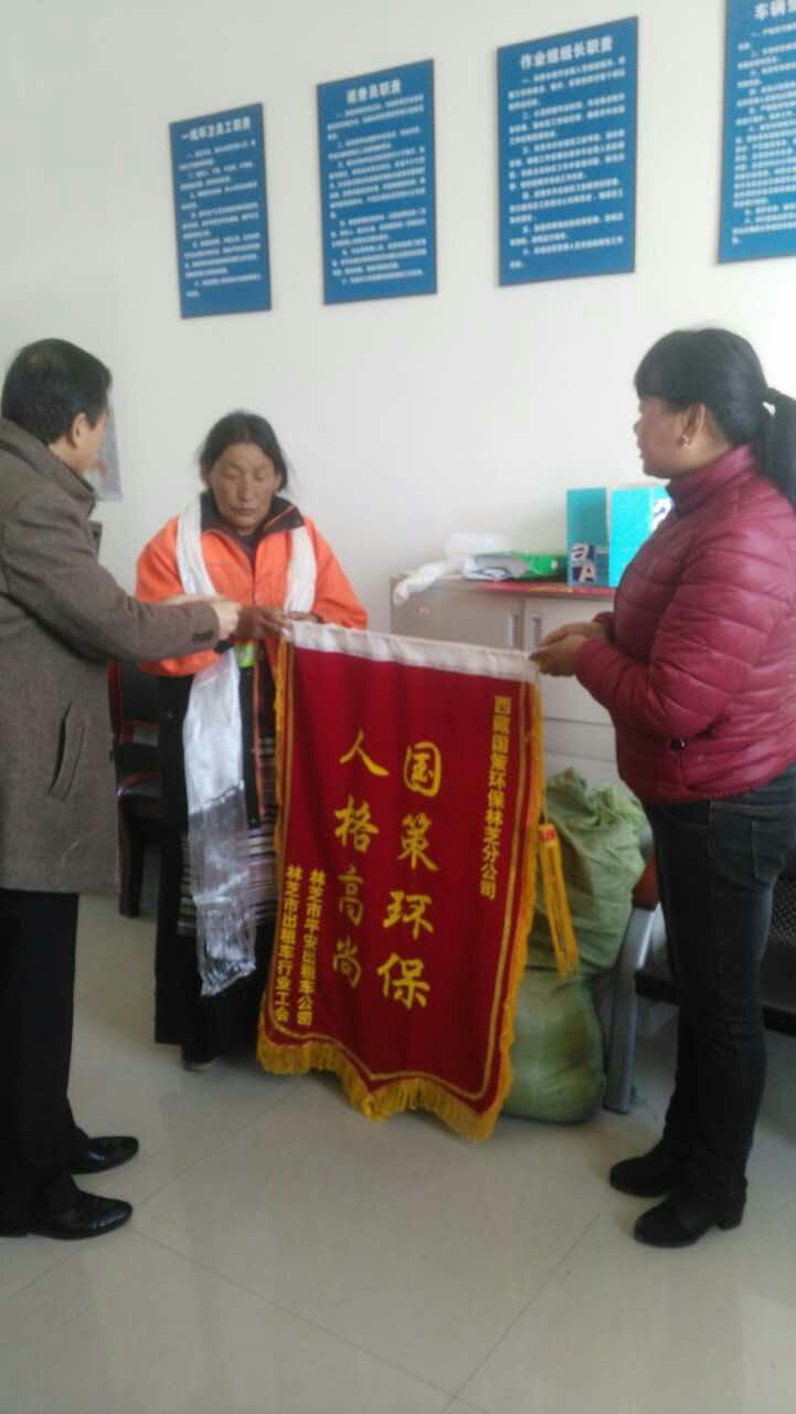 2017年3月27日,我公司環(huán)衛(wèi)工人在工作期間拾到某出租公司重要資料,及時與出租車公司取得聯(lián)系并歸還。該出租車公司領(lǐng)導為表達謝意,專程為我公司送來錦旗一面,并親自為這名環(huán)衛(wèi)工人獻上哈達和現(xiàn)金1000元作為感謝;同時對我公司這位環(huán)衛(wèi)工人拾金不昧的精神和我公司的管理方式贊不絕口。