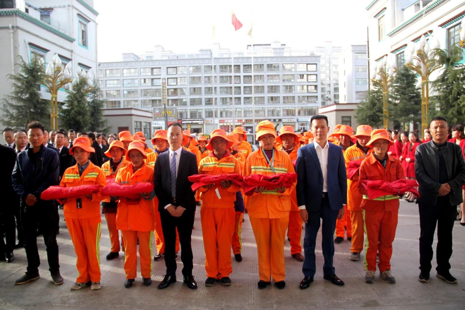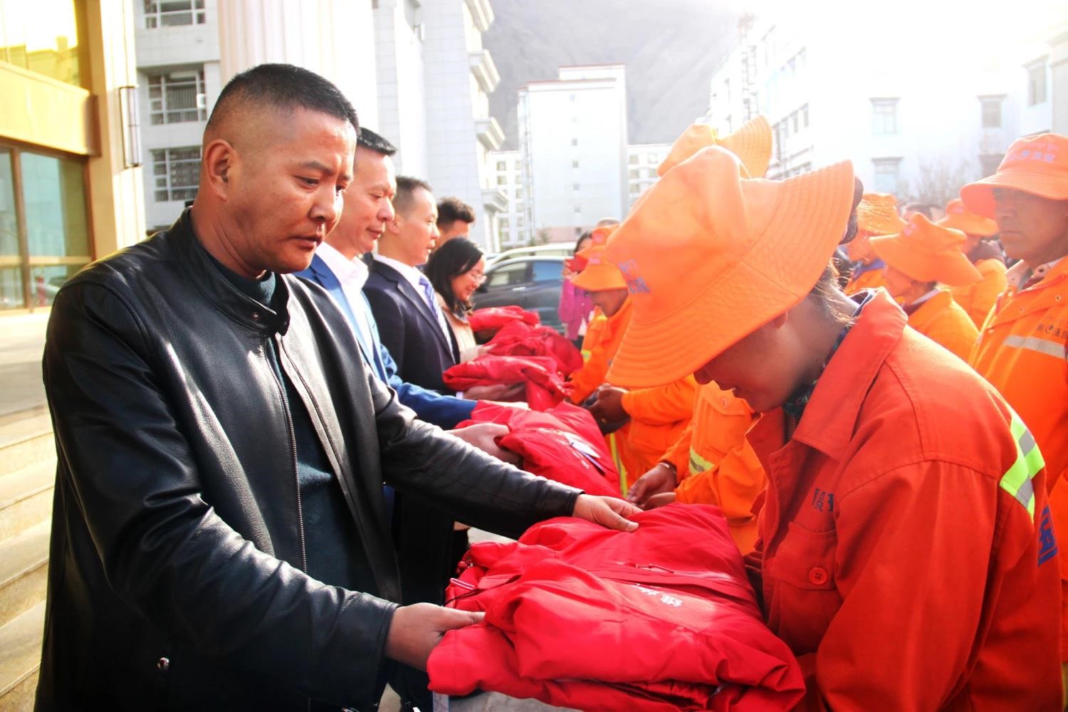 乃東區(qū)副區(qū)長格桑羅布、乃東區(qū)住房和城鄉(xiāng)建設(shè)局局長張俊、國策公司負責人次仁旺慶應邀參加活動,并共同為環(huán)衛(wèi)工人發(fā)放了保暖御寒的嶄新環(huán)衛(wèi)工裝。