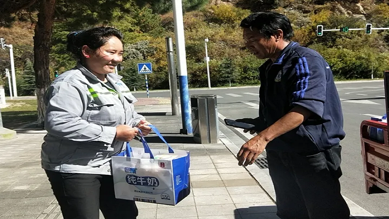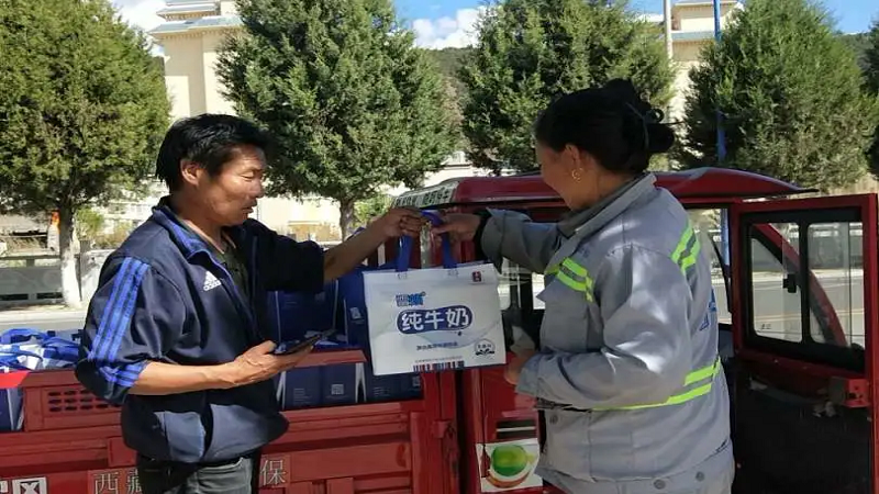 為感謝他們多年來(lái)的辛勤付出,國(guó)策環(huán)保林芝分公司相關(guān)人員向作業(yè)在一線的環(huán)衛(wèi)工人以每人80元的標(biāo)準(zhǔn),發(fā)放了當(dāng)?shù)靥禺a(chǎn)雪頓純牛奶、嘎瑪雞蛋、鹽等慰問(wèn)品,共計(jì)274份。