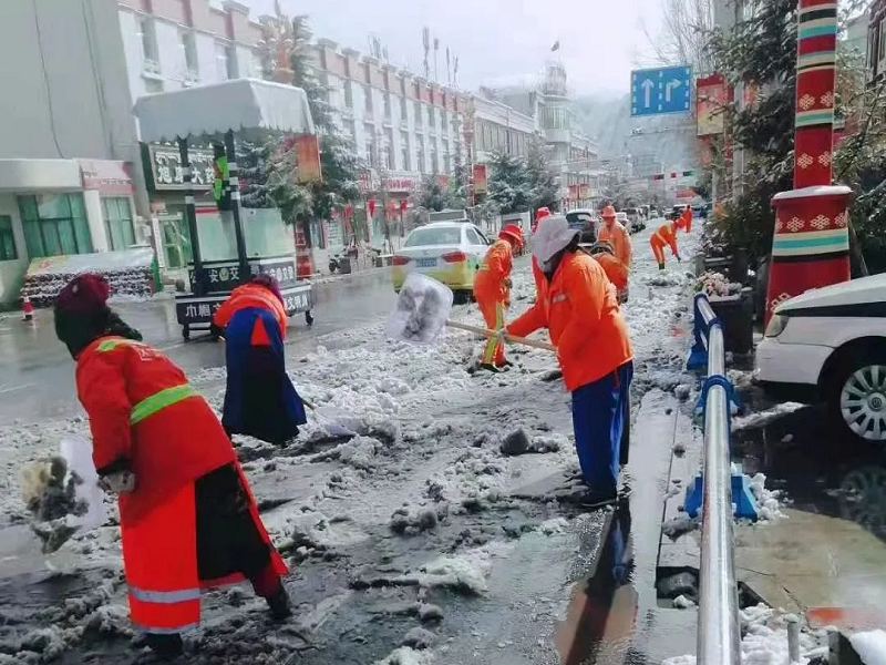 日喀則分公司一線環(huán)衛(wèi)工人以雪為令全力投入到除雪工作中,做到人隨雪動,“雪未到,人先來”,確保各主次干道見本色、無積雪、無殘留的標準。