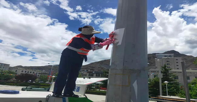 同時,山南分公司還調(diào)配了15名員工、1輛高壓沖洗車、1輛灑水車、1輛洗掃車、1輛多功能沖洗車組成了體育場臨時清洗隊(duì),對體育場垃圾桶、電樁小廣告、周邊雜草以及地面等進(jìn)行了集中清理,通過采取高壓水槍沖洗和人工擦拭相結(jié)合的方式,體育場周圍環(huán)境及設(shè)施煥然一新,顯露“本色”。