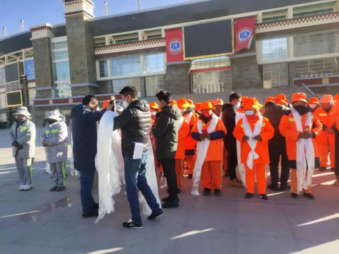 1月7日,為表達(dá)對(duì)國(guó)策一線(xiàn)環(huán)衛(wèi)工人的關(guān)懷和祝福,林芝市慈善總會(huì)在工布公園工布廣場(chǎng)開(kāi)展了“寒冬送溫暖 致敬城市美容師”送冬衣活動(dòng)。活動(dòng)現(xiàn)場(chǎng),市慈善總會(huì)工作人員為50名環(huán)衛(wèi)工人敬獻(xiàn)哈達(dá),并送上慰問(wèn)冬衣。
