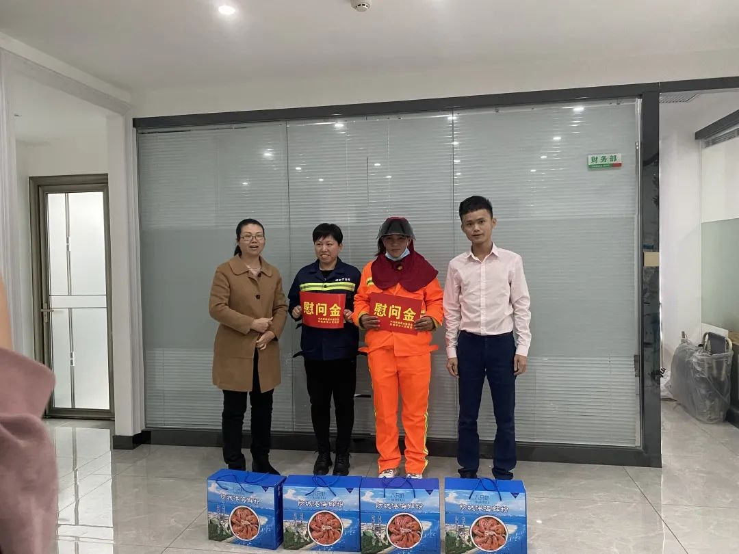 1月24日,防城港市總工會(huì)開(kāi)展節(jié)前慰問(wèn)活動(dòng),為國(guó)策環(huán)保防城港分公司一線(xiàn)環(huán)衛(wèi)人員送去了溫暖和關(guān)懷。