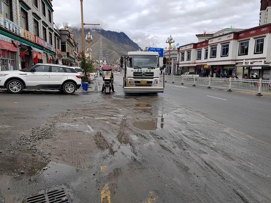 直至6月28日午時(shí),國(guó)策環(huán)保山南分公司累計(jì)出動(dòng)環(huán)衛(wèi)工人100余人次、裝載機(jī)10余車次、灑水車20余車次、路面清掃車20余車次,已清理泥土沙石總量約為20噸,市內(nèi)主要干道及泥石流發(fā)生路段已全面清理完成。