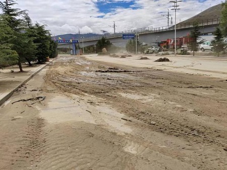 經(jīng)巡查,發(fā)現(xiàn)安徽大道、貢布路、G349國(guó)道等路段均有因泥石流造成的路面泥土、沙石堆積現(xiàn)象,嚴(yán)重威脅來往車輛及行人的出行安全。